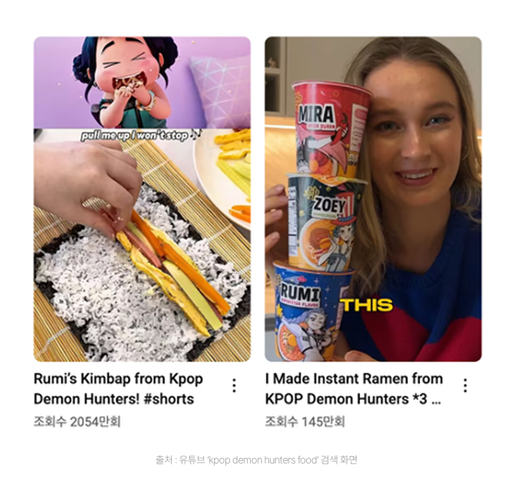 전 세계가 한국 음식에 열광하고 있습니다. 김치, 불고기처럼 몇 가지 대표 메뉴가 K-푸드의 전부라 여겨질 때도 있었지만, 이제는 이야기가 달라졌습니다. 한식이 ‘낯선 음식’에서 ‘한 번쯤 꼭 경험해야 할 글로벌 미식’으로 자리 잡았죠. 그 중심에는 최근 글로벌 흥행을 거둔 애니메이션 <케이팝 데몬 헌터스>가 있습니다. 작품 속 등장한 김밥, 컵라면, 핫도그, 순대 등을 직접 만들고 먹어보는 해외 팬들의 영상은 수백만에서 천만회를 넘는 조회수를 기록하고 있어요.