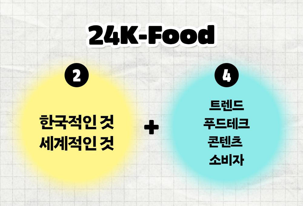 한국적인 것과 세계적인 것(2), 트렌드·푸드테크·콘텐츠와 소비자(4)가 맞물려 만들어낸 황금빛 시너지라 정의했습니다.
