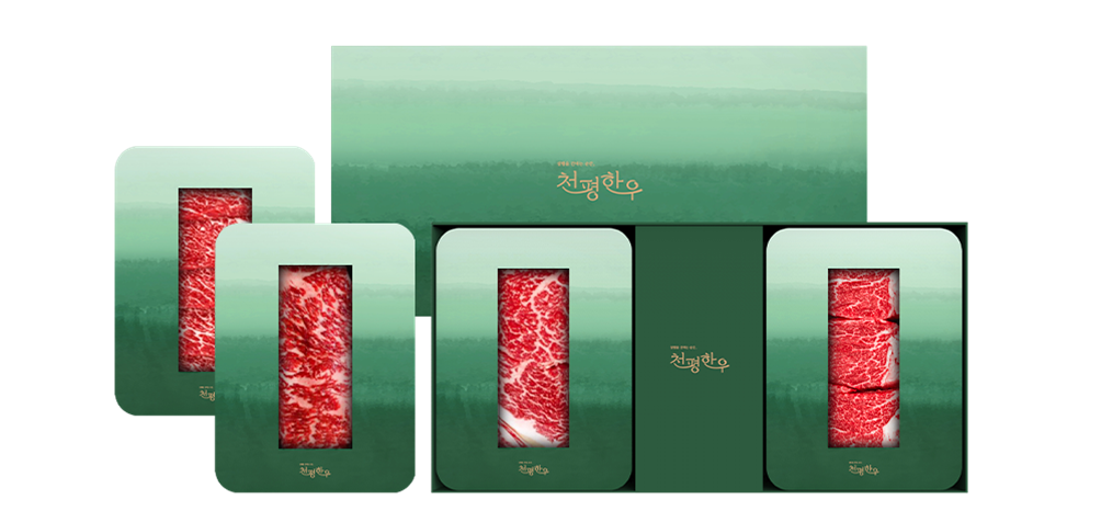 천평한우의 패키지는 천평농장의 푸르른 자연을 그대로 담아냈다. 받는 이에게 설렘을 전달하는 디테일이 가득한 디자인은 추석 선물로서의 가치를 더욱 높인다. 천평한우 선물세트는 그 자체로도 특별한 메시지를 전달한다.